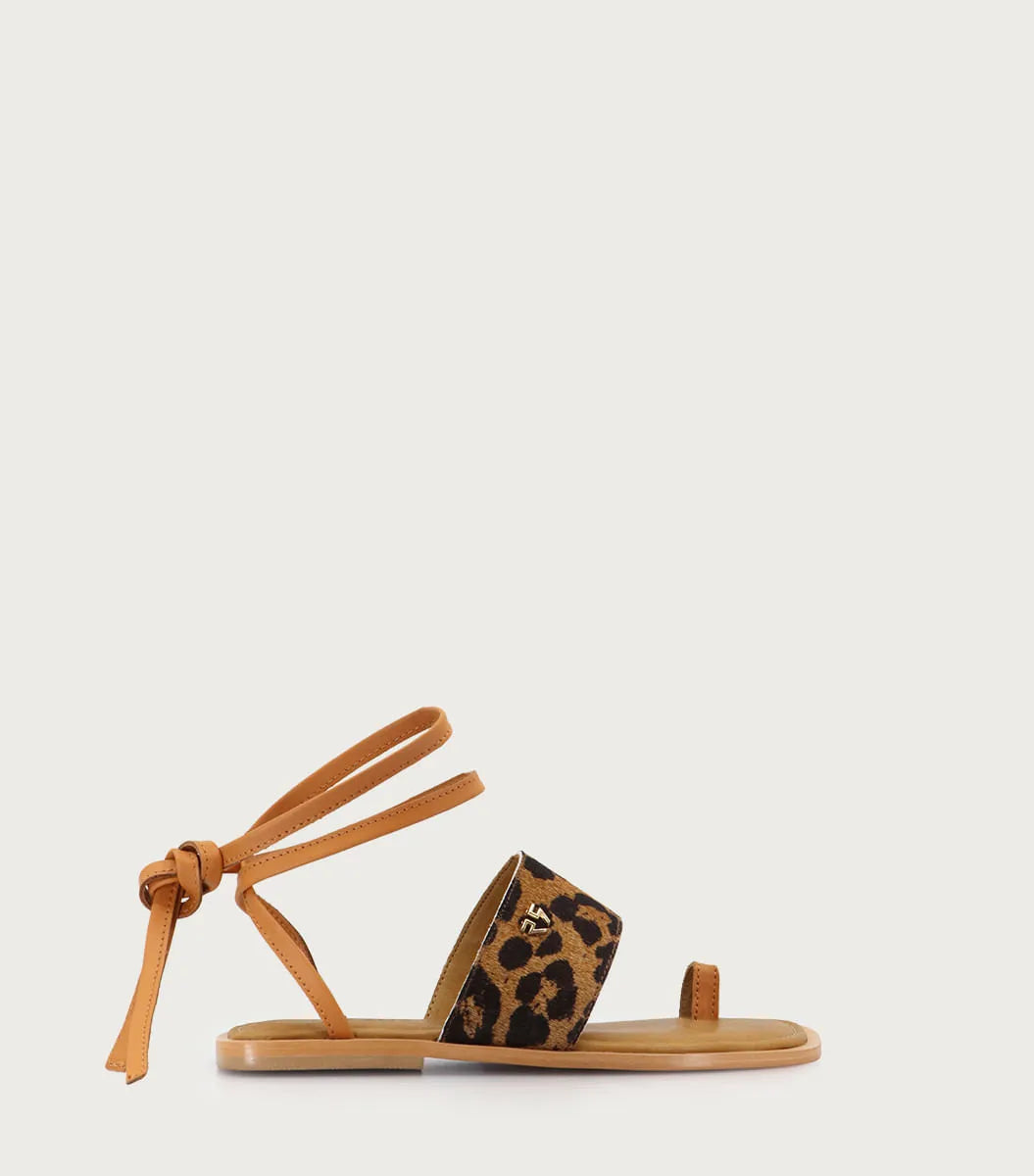 Sandalia Melf animal print, confeccionada con faja de pelo natural y pulsera de tiras estilo gitana. Forrería de cuero vacuno de alta calidad, plantilla rellena con efecto confort para mayor comodidad y suela de goma artesanal resistente. Ideal para quienes buscan un calzado exclusivo, cómodo y con diseño único