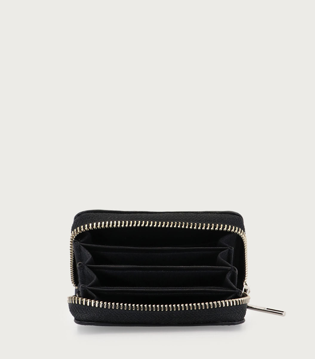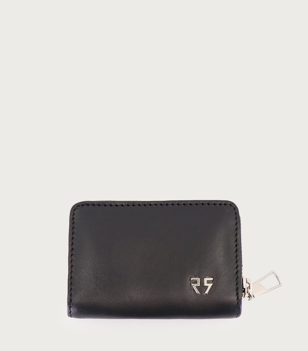 Billetera Busta negra mini de cuero con logo RS en frente. Con detalles distintivos de la marca, es una opción ideal para quienes buscan un accesorio práctico y con identidad de moda.