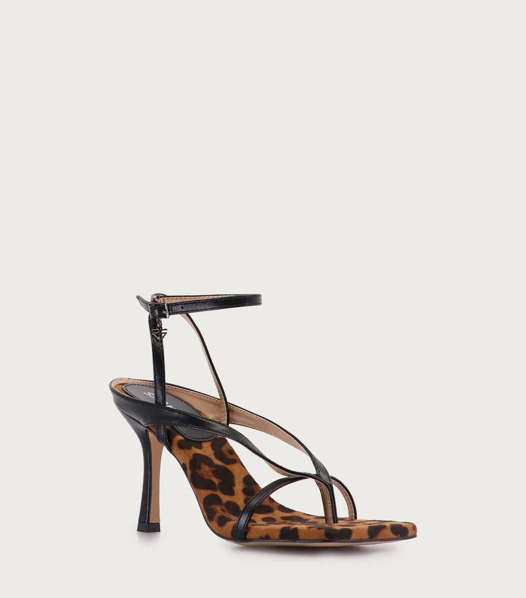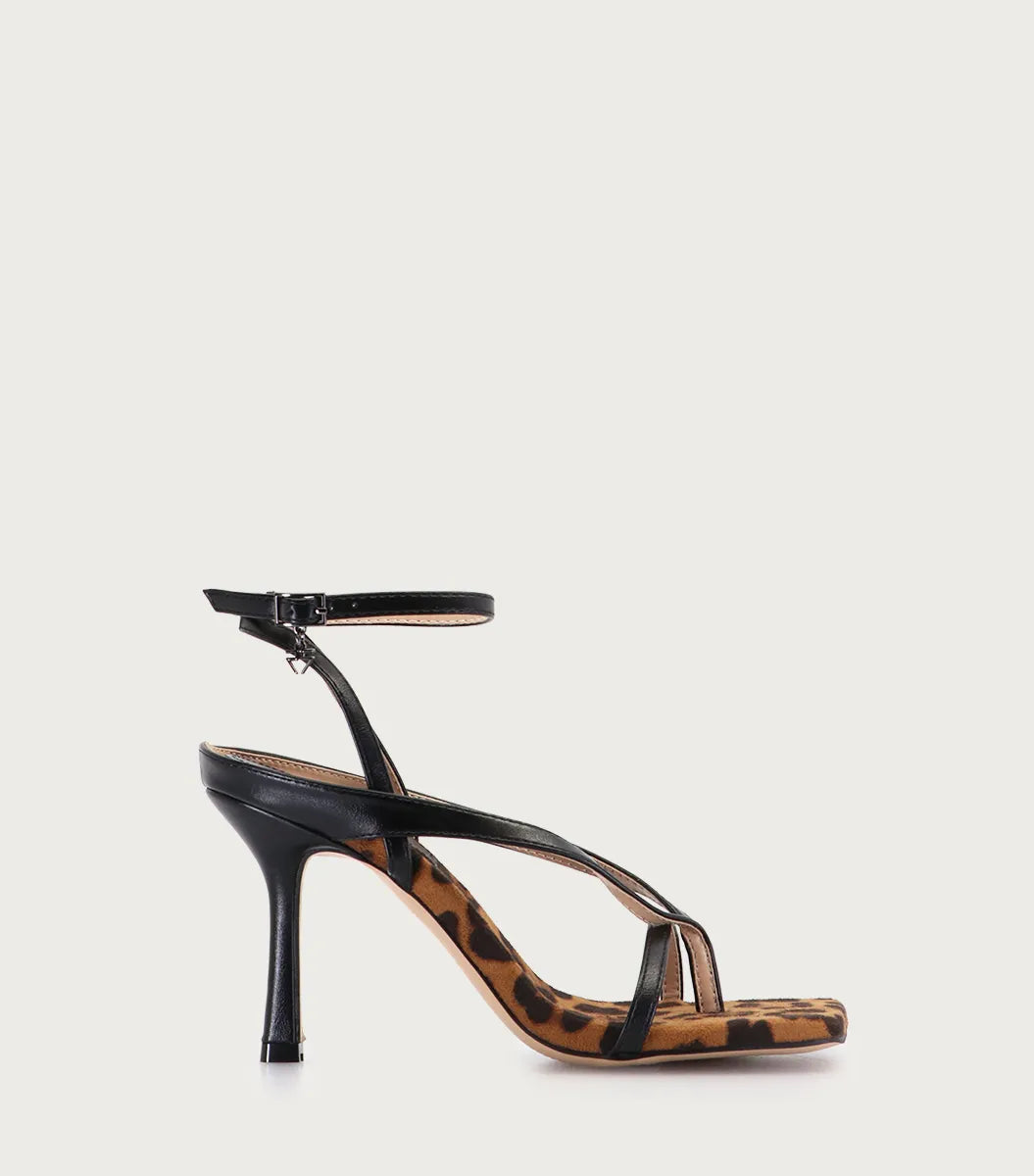 Sandalia Rumeri leopardo en fibras animal friendly, con detalle de hebilla con logo y forrería a tono. Taco y plantilla forrados en el mismo material de la capellada, altura del taco: 8 cm. Diseñada para quienes buscan estilo, comodidad y compromiso con materiales sostenibles. Modelo de horma grande: sugerimos evaluar un talle menos